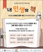 포항시립도서관은 시민들의 책 추천을 받아 포은중앙도서관 1층 로비에 10월 한 달간 로비 테마도서와 함께 전시할 예정이라고 밝혔다. ‘내 인생의 책’(2021도서관상주작가지원사업 프로그램)이라는 제목으로 삶의 전환점이 됐거나 큰 감동을 주는 등 내 인생에 있어 가장 의미 있는 책을 추천해 시민들과 함께 읽고 ..