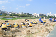 영천시(시장 최기문)는 28일 최근 코로나19로 심신이 지친 시민들을 달래주고 있는 금호강 둔치 꽃밭에 식재된 보리를 시민들과 함께 수확했다.금호강 둔치 꽃밭에는 시민들에게 다양한 볼거리와 힐링 공간을 제공하고자 약30,000㎡의 면적에 사계장미외 16종 약 62,000여본을 식재했으며 하천과 산책로 사이 길이 840m, ..