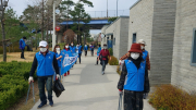 포항시 마을 평생 교육 지도자 협의회 철길 숲 정화 운동과 포항 주소 갖기 홍보