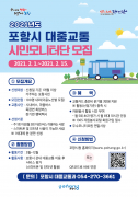 포항시는 2월 1일부터 2월 15일까지 버스 운행 및 서비스에 대한 평가를 통해 대중교통 이용 만족도와 서비스 향상에 도움을 줄 ‘대중교통 시민 모니터단’을 모집한다. 신청일 기준 1개월 이상 관내 거주한 포항시민을 대상으로 매주 1회 이상 매월 5회 이상 버스를 이용하는 시민 100명을 모집할 예정이다. 모니터..