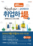 포항청춘센터는 POSCO와 공동으로 9월 10일 오전 9시 30분 포항 지역 청년 100여 명을 대상으로 비대면 ‘취업하場' 채용설명회를 온라인으로 개최한다. ‘취업하場’ 채용설명회는 포항시에 소재한 주요 기업들이 참여하여 포항청년들에게 각 기업의 채용전형과 전략을 설명하고 취업기회를 제공하는 프로그램으로, ..