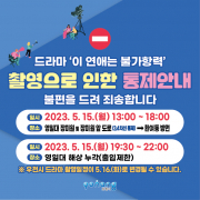 포항시는 15일(우천 시 16일) 드라마 ‘이 연애는 불가항력’ 촬영으로 인해 영일대 장미원 앞 일부 구간이 통제된다고 밝혔다. 도로 통제 구간은 영일대 장미원 앞에서 환여동 방면 3·4차선 도로로 오후 1시부터 최대 오후 6시까지 통제될 예정이며, 영일대 해상 누각 또한 야간촬영으로 오후 7시 30분부터 오후 10시..