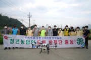 경상북도농업기술원에서는 9일 안동시 풍산들(풍산읍 소산리)에서 경상북도 청년농업인 드론 연합방제단의 벼 후기 공동시비 연시회를 가졌다. 이날 연시회에서는 제9호와 제10호 태풍의 잇따른 내습으로 생육이 불량한 벼의 익음(등숙)을 향상시키기 위해 액상규산 비료를 드론을 이용해 공동시비(10ha)를 실시했다. 올..