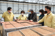 주낙영 경주시장은 14일 현곡면 하구리에 위치한 현곡농기계작목반 공동육묘장에서 무복토 못자리 파종 작업을 함께하고 작목반원들의 벼농사 애로사항을 청취했다. 현곡농기계작목반은 공동육묘장 1동 450㎡, 격납고 2동 100㎡ 등 총 550㎡의 규모의 시설을 보유하고 있으며, 매년 육묘상자 26,000개, 87㏊분량을 파종..