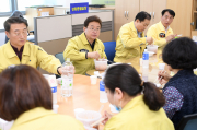 포항시는 18일 코로나19 비상근무로 지친 도청 비상근무자 300여명에게 영양이 가득하고 싱싱한 포항 해산물을 먹고 힘내서 ‘경북에서 코로나19를 박살내라’는 마음을 담아 물회와 전복죽 도시락을 전달했다.이강덕 포항시장은 “요즘 강도다리 활어회 도시락 드라이브스루가 전국에서 많은 주목을 받고 있다. 코로나19..
