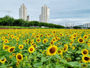 영천시 최고의 힐링 명소인 ‘금호강 둔치 꽃밭’에 해바라기, 에키네시아, 백합, 부용, 메리골드, 백일홍, 칸나 등 여름 꽃들이 각각의 색깔과 향기로 시민들을 사로잡고 있다.영천시는 친환경 녹색도시 조성을 위해 직영 양묘장에서 키운 메리골드, 해바라기, 부용, 접시꽃 등 19만본을 영천교에서 완산보 사이에 식재..