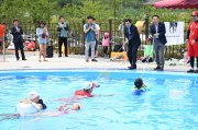경주시는 26일 청소년수련시설 화랑마을에서 생존수영 교육과 가족단위 피서를 겸한 물놀이 장소인 ‘체험형 수영장’의 개장식을 개최했다.이 날 개장식에는 주낙영 경주시장, 내빈, 관계자 등 150여명이 참석 가운데 테이프커팅, 워터슬라이드 물 내리기, 생존수영교육 시연 등의 순으로 진행됐다. 주낙영 경주시장은 ..