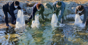 경상북도 민물고기연구센터는 24일 울진 왕피천에서 동해안 연어자원 조성 및 지역 어업인 소득 창출을 위해 어린연어 90만 마리를 방류한다고 밝혔다.이번에 방류하는 어린연어는 지난해 9월부터 11월까지 울진 왕피천에서 포획한 어미연어(암컷 253, 수컷 351)로 부터 성숙된 알을 채란채정 후 약 3개월 간 사..