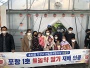 포항시는 9일 흥해읍 소재 영일만딸기체험농장이 딸기 무농약 인증을 획득 했다고 밝혔다. 무농약 인증은 농약을 전혀 사용하지 않고 생산한 농산물로 화학적 안전성이 검증된 것으로 포항시 기술보급과는 흥해 딸기 단지의 친환경 딸기 재배를 위해 지난해부터 천적을 이용한 해충방제 기술 보급 사업을 추진하여 육묘..